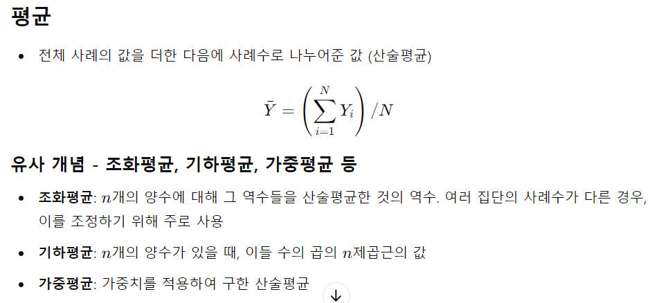 유사 개념 - 조화평균, 기하평균, 가중평균 등