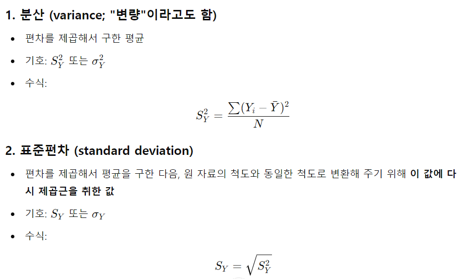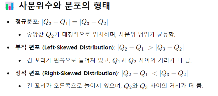 - 관련 개념: 범위, 사분위간 범위, 분산, 표준편차