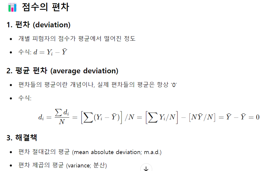 - 점수분포가 얼마나 퍼져 있는지, 즉 다양성의 정도