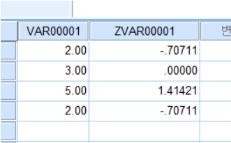 기말점수, 2,3,5,2 데이터의 z점수 변환 SPSS