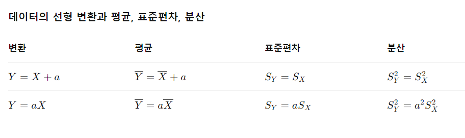 - 평균과 표준편차만 변화할 뿐, 분포의 형태는 그대로 유지