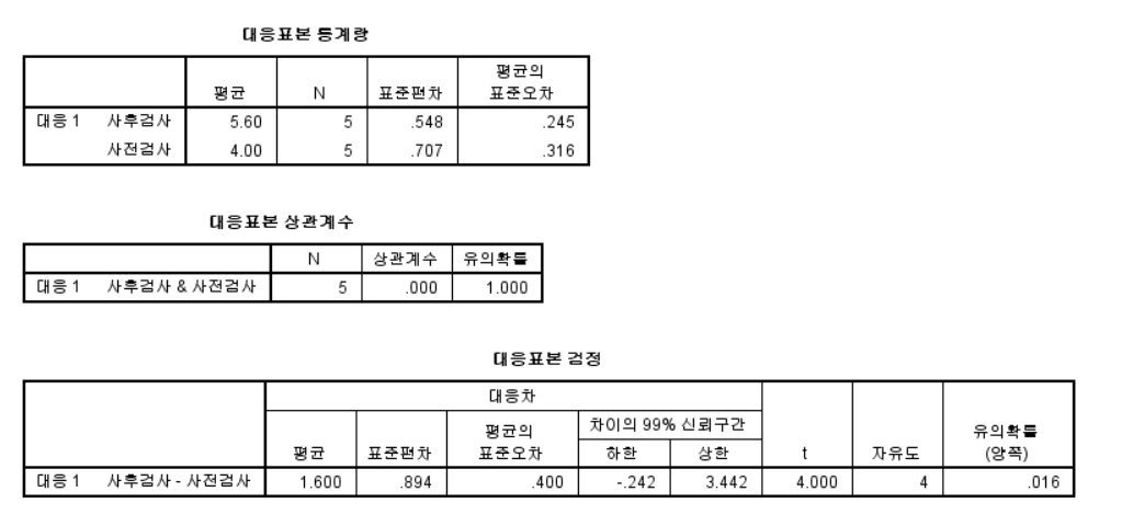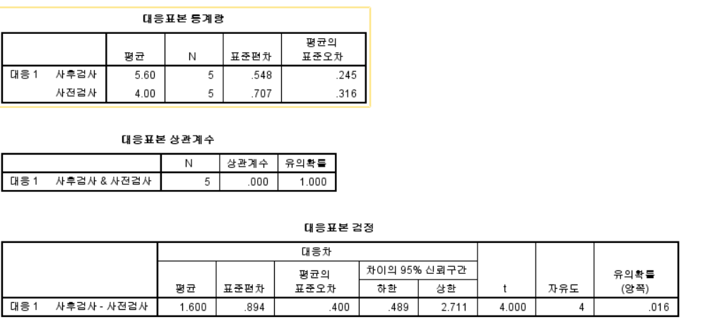 ◻ 두 종속표본 t검증
