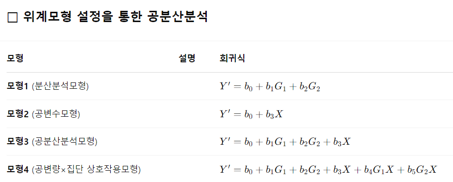 □ 공분산분석(Analysis of Covariance; ANCOVA)