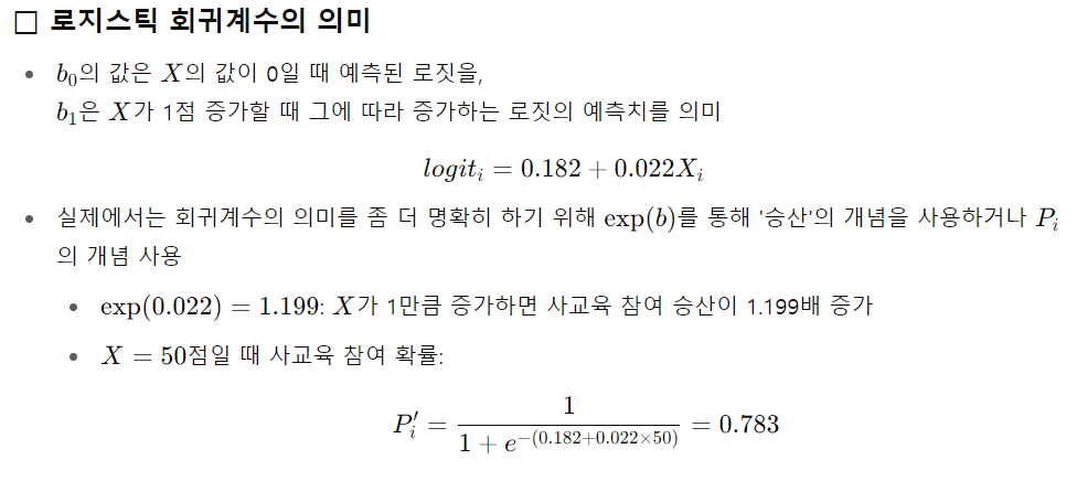 - 범주변수인 종속변수와 연속적 독립변수의 비선형적 관계 검증을 위해 손쉽게 사용 가능
